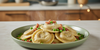 RAVIOLONES CAPRESSECON ZUCCHINI, QUESO DE CABRA Y ALMENDRAS TOSTADAS