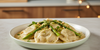 SORRENTINOS ESPINACA & PROVOLONE CON MANTECA DORADA, PANCETA CROCANTE Y ARVEJAS TOSTADAS